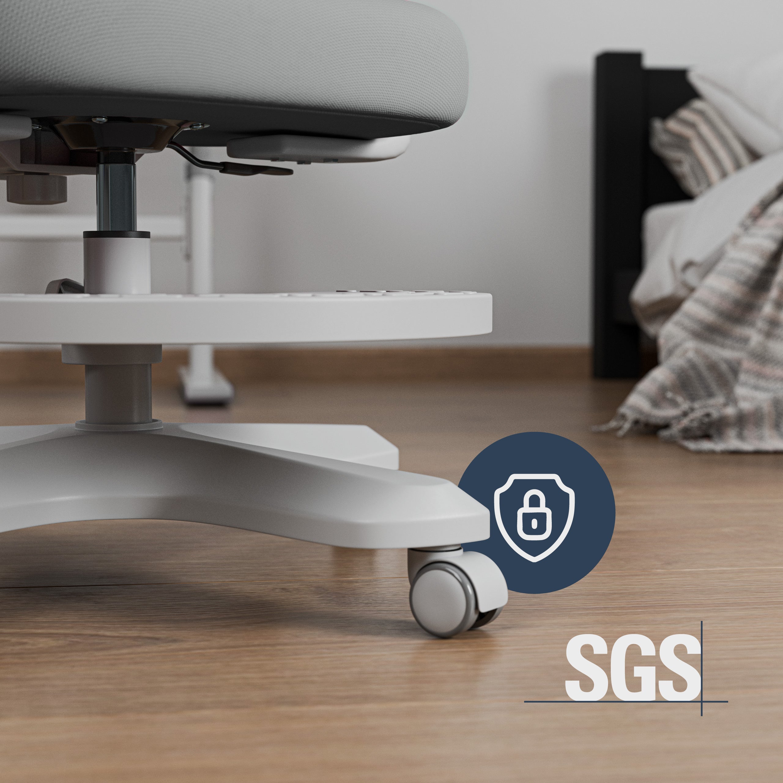 Der Junior-Stuhl ist mit einer Feststellbremse an den Rollen ausgestattet, die für Stabilität im Sitzen sorgt. So können Kinder den Schreibtisch bequem nutzen, ohne unkontrolliert zu wackeln. Diese praktische Lösung ermöglicht es ihnen, sich besser auf das Lernen, Malen oder Hausaufgabenmachen zu konzentrieren.