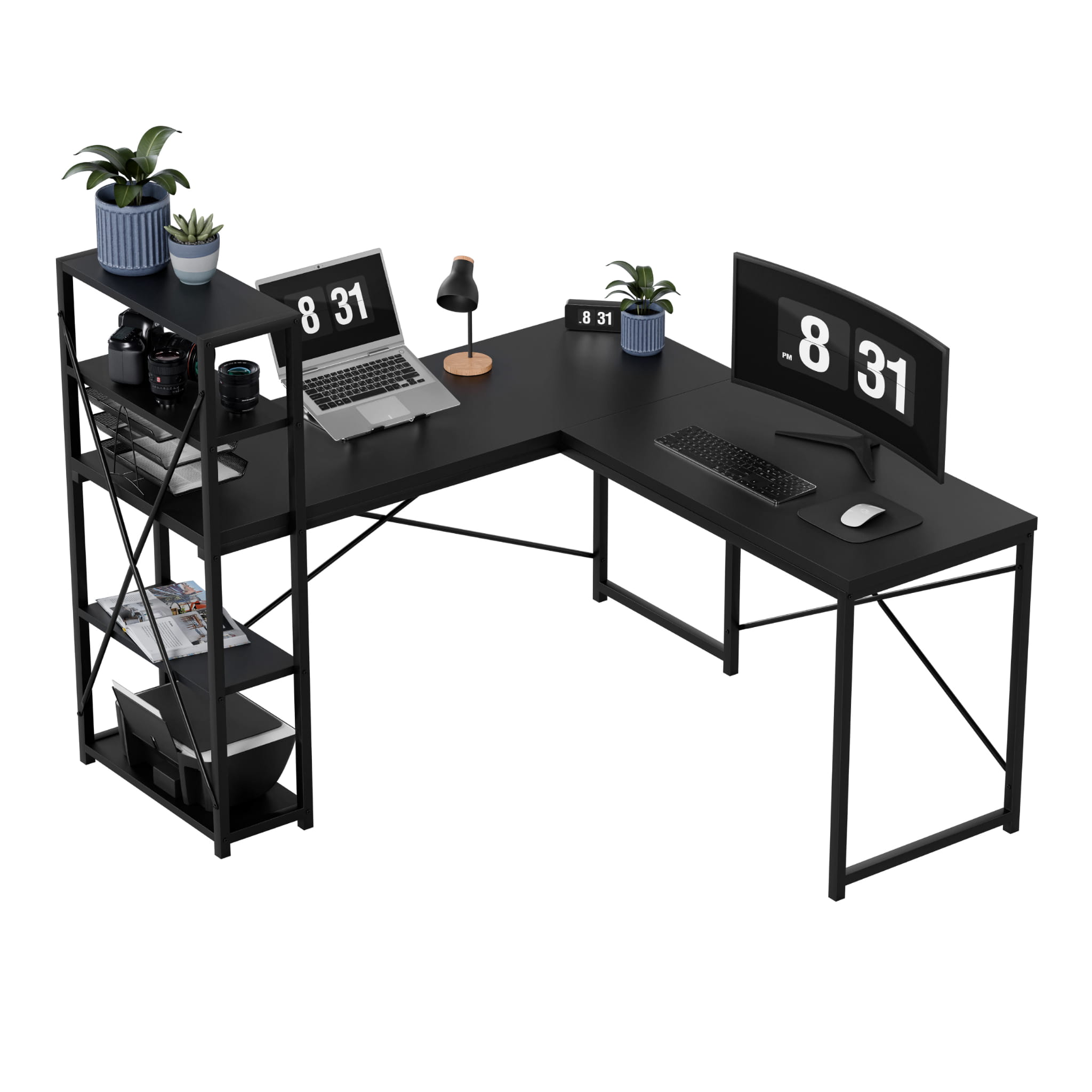 Ein großer Arbeitsbereich mit Abmessungen von 145 cm x 145 cm bietet Ihnen die Freiheit der Freiheit, unabhängig davon, ob Sie mit einem Laptop, Dokumenten oder Platz für einen zusätzlichen Monitor benötigen. Zahlreiche Regale sind eine praktische Lösung, die die Organisation erleichtert - Sie werden immer einen Platz für Bücher, Accessoires oder Dekorationen finden, die eine angenehme Atmosphäre schaffen.